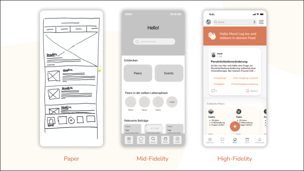 Figure 2: Wireframes and prototypes have been tested iteratively. The process uncovered usability issues.