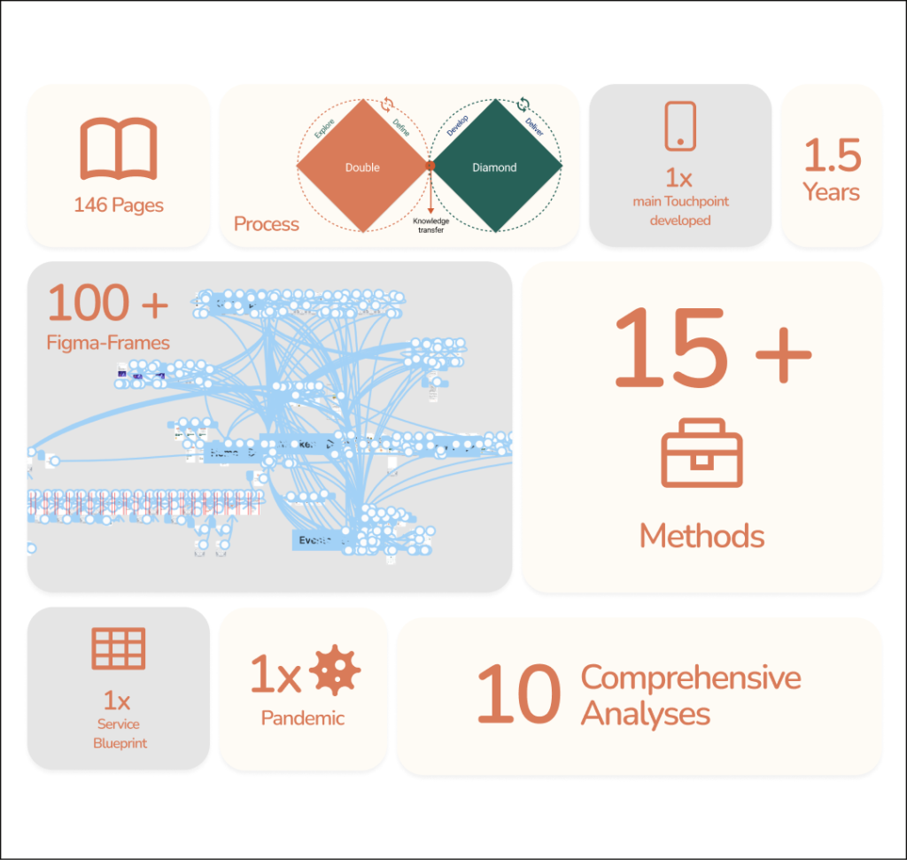 The approach to my Master’s Thesis integrated theoretical research with practical application. Through extensive desk research, I delved into fundamental design and interaction theories, while also studying concepts such as self-determination theory and behavioral economics. Additionally, I conducted interviews to identify pain points and uncover opportunities within the chosen field.