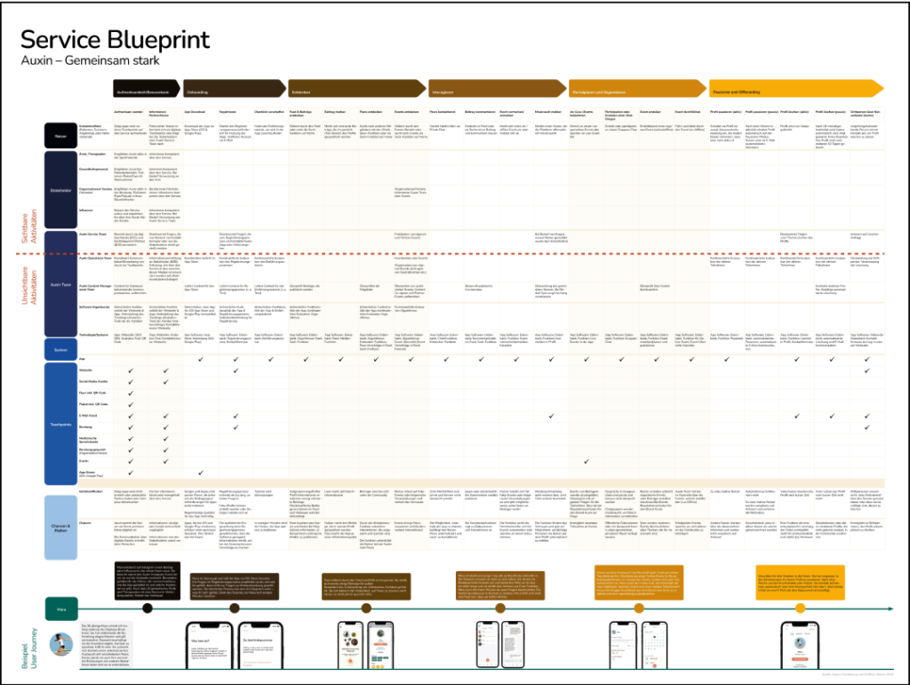 Figure 6: In addition to the app, I created a Service Blueprint that maps out all the steps involved from the customer’s perspective, including behind-the-scenes actions. This aids in understanding the service’s design and identifying areas for improvement.