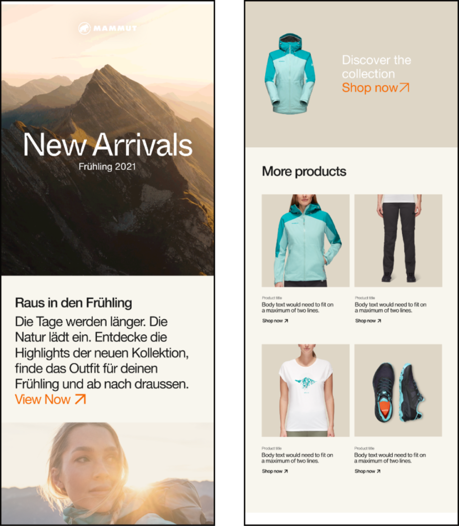 Figure 3: Collaborating with the team, I led the development of the new newsletter concept. Our goal was to inspire customers by seamlessly integrating emotional images with product visuals. Each newsletter featured a defined key visual, which also established the color palette for the overall visual identity.